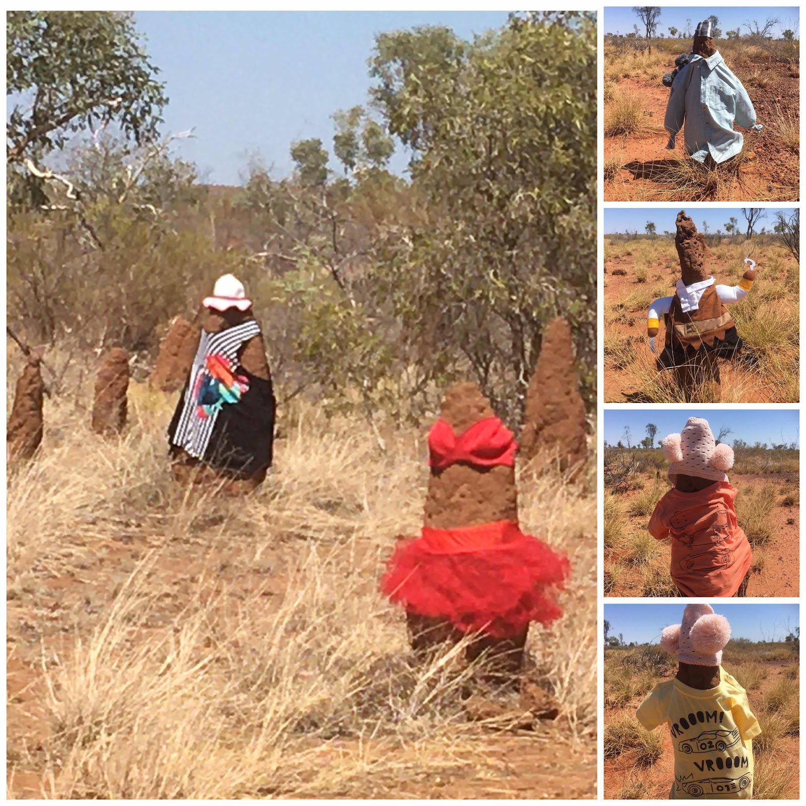 For hundreds and hundreds of kilometres along the Barkly  Highway there are dressed termite mounds to amuse weary drivers, and their passengers!