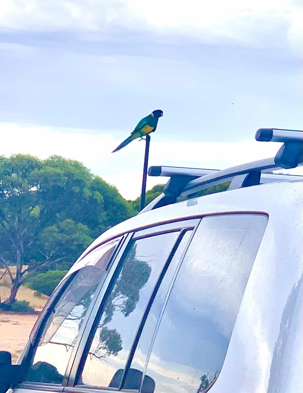Woke up to these little blighters (ring neck parotts) all over our roof of the van, at the Old School Site